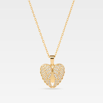 Superfin halsband med änglavingar formad som hjärta. Bakom vingarna gömmer sig ett hjärta som kan graveras enligt dina önskemål. Det här halsbandet är den perfekta presenten till någon du håller kär.