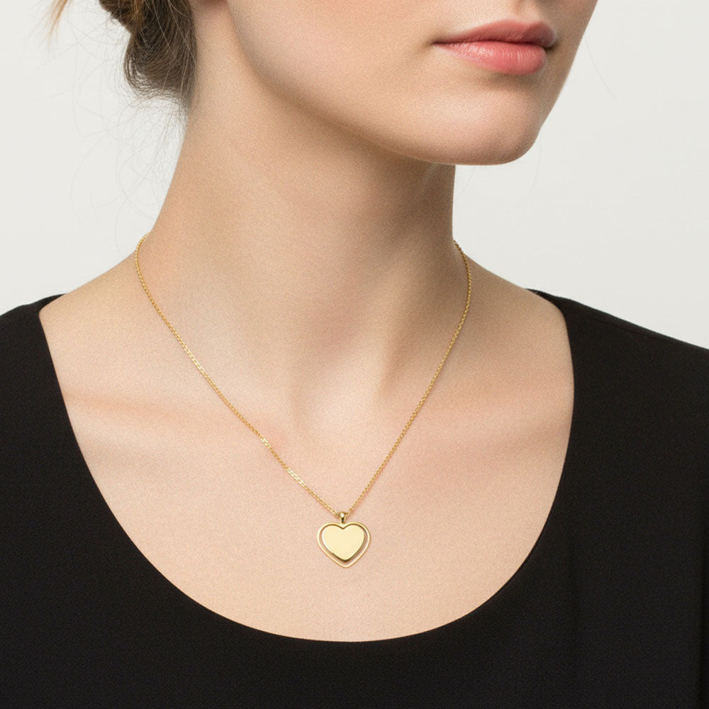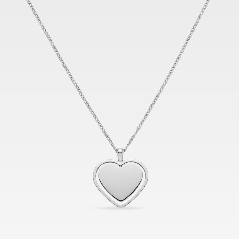 Superfin och elegant halsband med ett hjärta som kan snurra runt ramen. Kedjan och medaljongen är tillverkade i rostfritt stål. Guldmodellen är pläterad med 18k guld.